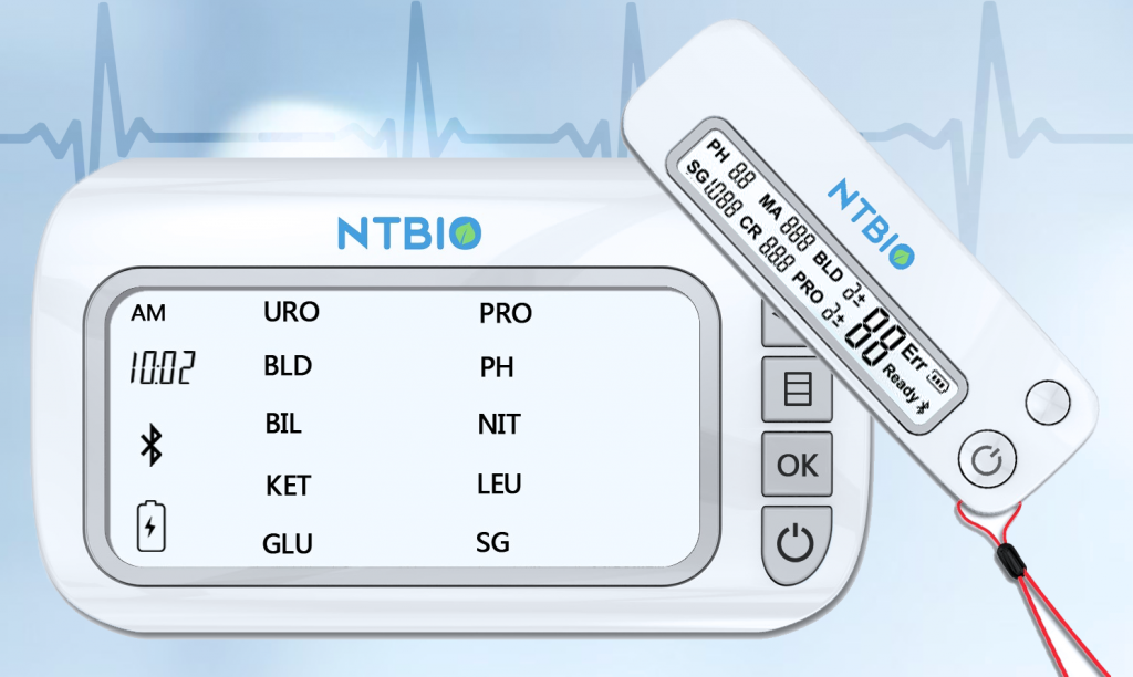 The NTBIO Urine Analyzer provides convenient workflow using our accompanying urine testing mobile application. Results can be viewed both on display and in the app, which also provides diagnostic suggestions! Through its automatic specimen absorption and electronic analysis, our urine testing app allows for wireless synchronization which then provides automatic data transfer through an SD memory card and/or cloud database. You can also chose from two designs, a small, convenient option which test 6 targets and diagnostic meanings for kidney disease patients and bigger one allowing a wider target range of 14 targets. Get in touch with us to know more about what works best for you!